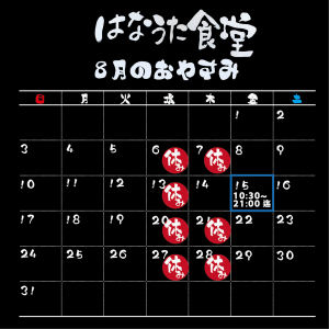 はなうた食堂 お休みカレンダー 8月
