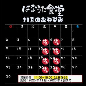 11月はなうた食堂 お休みカレンダー | 三次もののけミュージアム