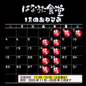 2026.1月 はなうた食堂 お休みカレンダー